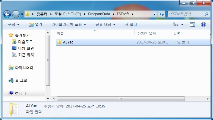 - C:\ProgramData\ESTsoft\ALYac Æú´õ