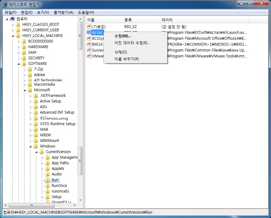 - HKEY_LOCAL_MACHINE\SOFTWARE\Microsoft\Windows\CurrentVersion\Run\ALYac