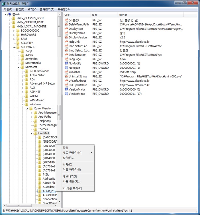 - C:\Program Files\ESTsoft\ALYac Æú´õ (¾Ë¾àÀÌ ¼³Ä¡µÈ °æ·Î)